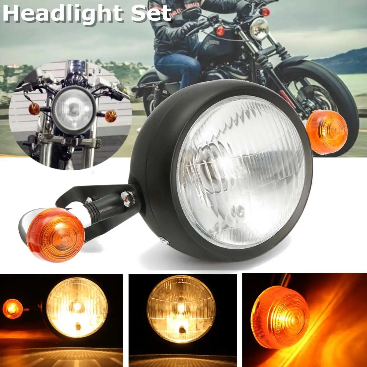 12V Motorcycle Headlight Hi/Lo Beam Turn Signal Indicator Lamp Bulb Kit Cafe Racer Bobber Chopper