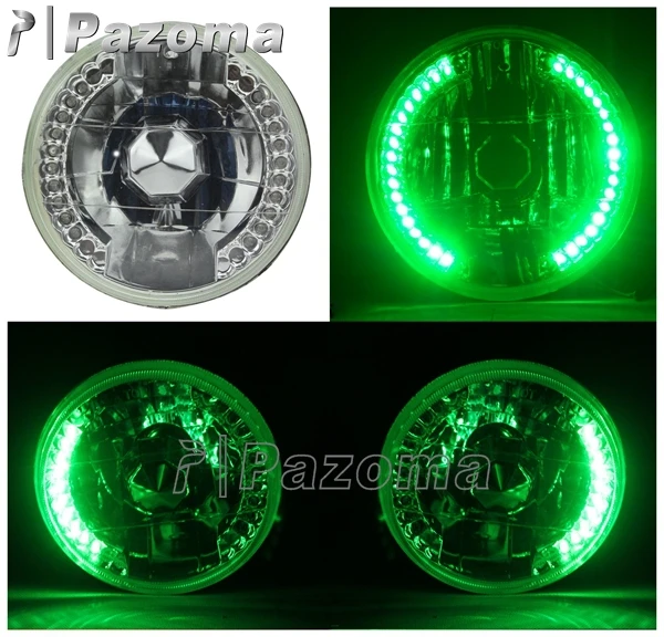 PAZOMA 5-3/4"Green Motorcycle Halogen Headlight Light Bulb Crystal Green Led Halo Angel Eye